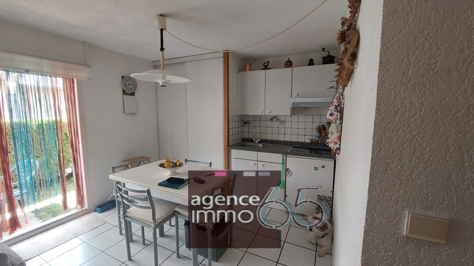 Il se compose d'une entrée avec une chambre une salle de bain, wc séparés, une belle piece de vie avec kichenette donnant sur le jardinet.